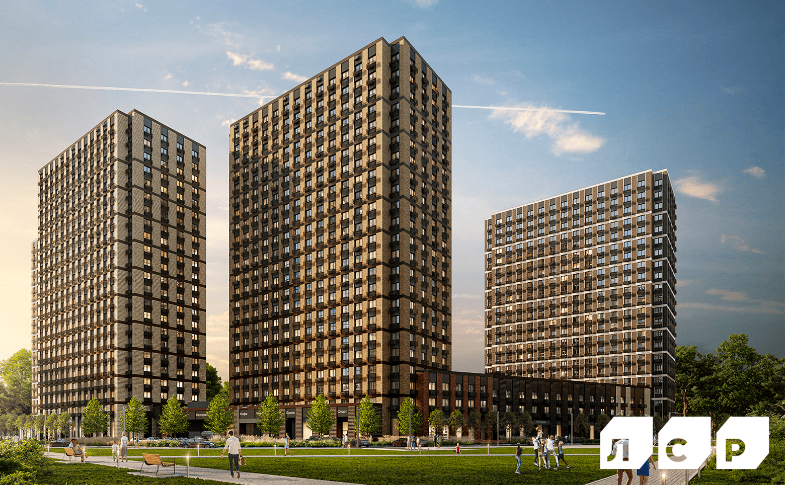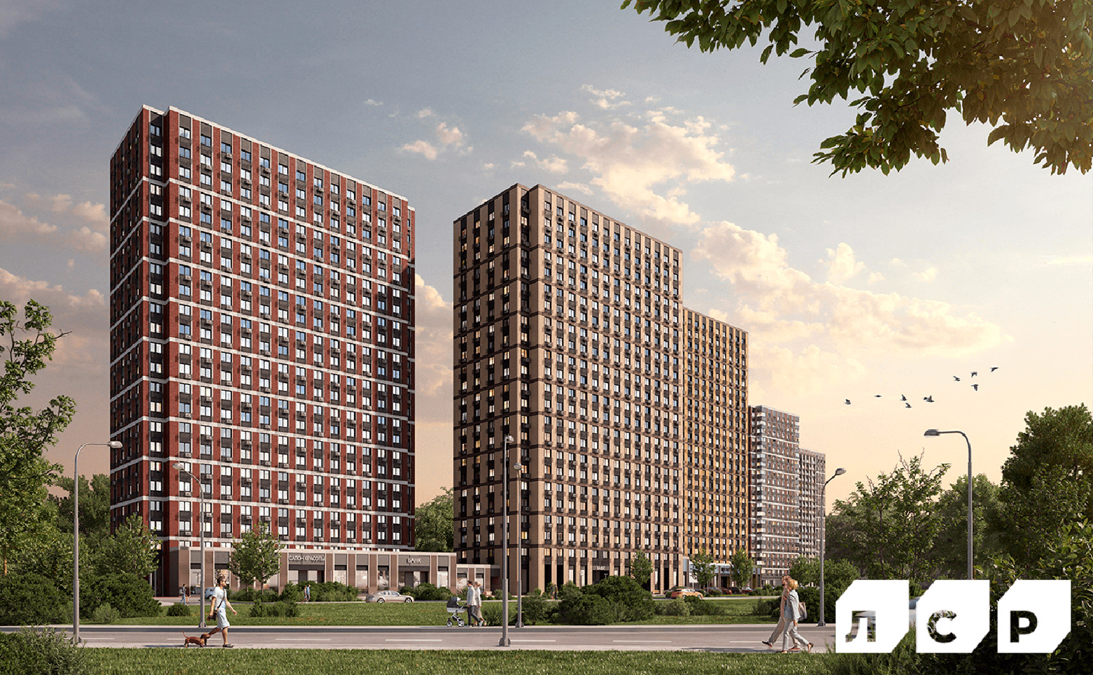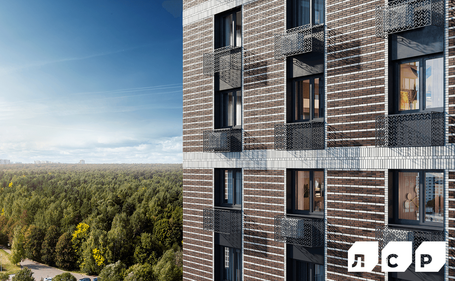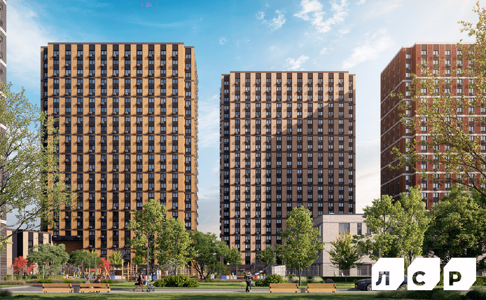 Жилой комплекс, разделенный на 2 очереди строительства, состоит из 8 корпусов. Архитектурную концепцию разработало бюро «СПИЧ». Облицовка фасадов выполнена клинкерной плиткой со вставками из алюминиевых композитных панелей. Первые этажи корпусов продолжают внешний облик башен — для их отделки используется клинкерная плитка в цвет каждого фасада. В комплексе создана безбарьерная среда — входы в корпуса расположены на уровне земли. В каждом корпусе предусмотрены консьерж и удобные колясочные комнаты. Для хранения вещей и спортивного инвентаря предусмотрены кладовые помещения, которые находятся на каждом этаже.