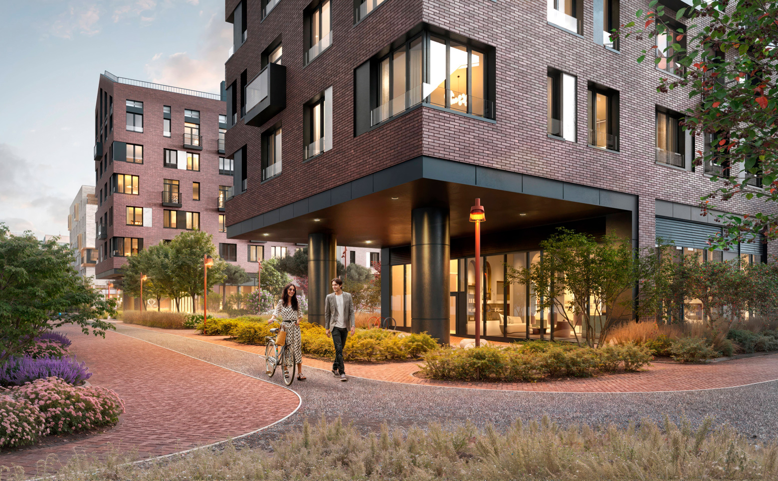 Малоэтажный загородный комплекс состоит из 5 корпусов высотой от 4 до 6 этажей. Фасады домов в европейском и скандинавском стилях облицованы кирпичом светлого и терракотового оттенков. В каждом корпусе — дизайнерское лобби от бюро Blank с зонами отдыха, комнатой матери и ребенка, местами для ухода за домашними питомцами.
