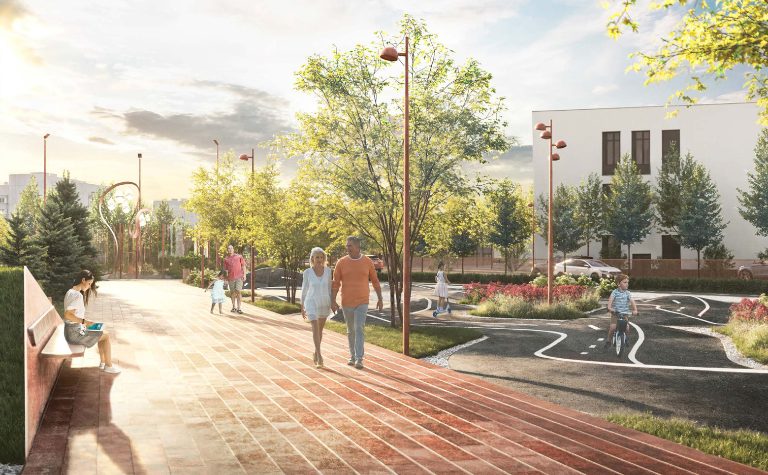 На территории проекта представлены специальные тематические кварталы: спорт-квартал, дог-парк, скейт-парк, арт-квартал, тим-парк и сад-квартал. Главный элемент комплекса — пешеходный бульвар, окруженный зелеными зонами. Проектом предусмотрен детский сад на 350 мест и школа на 775 мест. На первых этажах комплекса расположена торговая галерея с магазинами и кафе. Для владельцев автомобилей предусмотрен подземный паркинг на 507 мест.