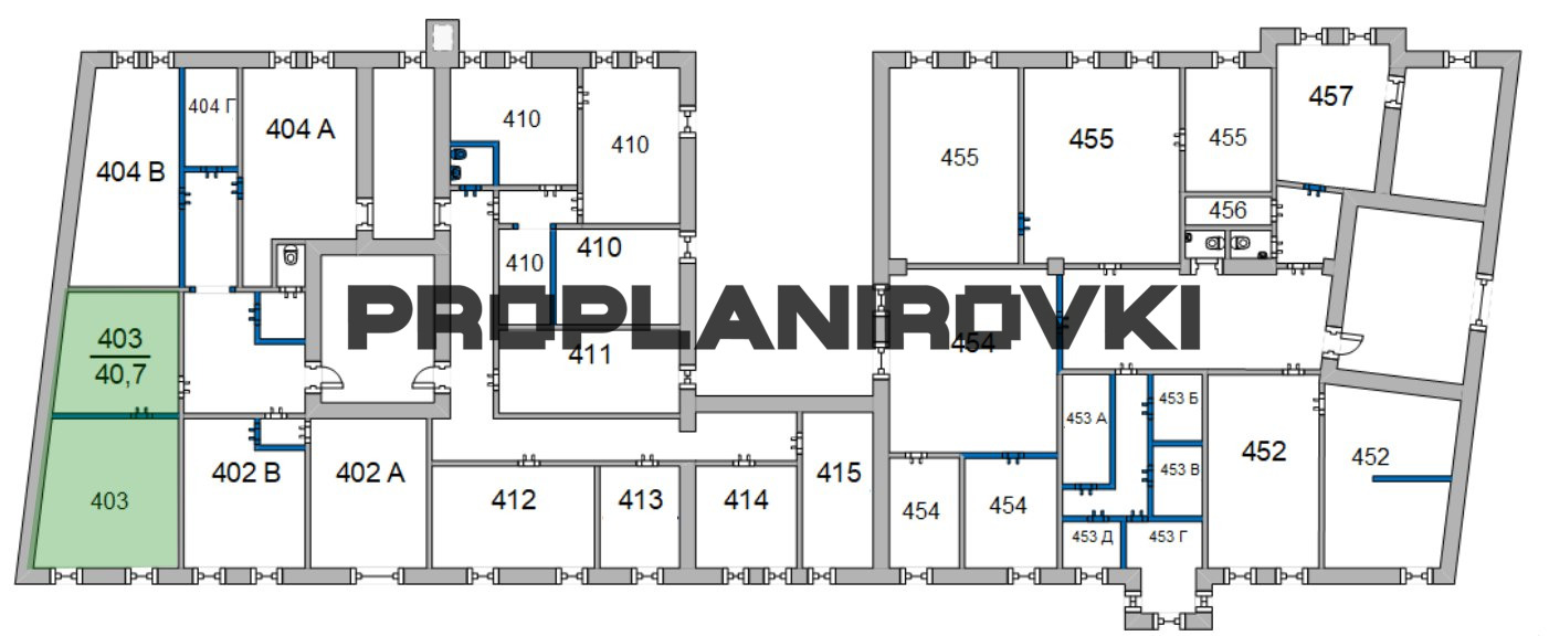 Офисный блок находится на 4-м этаже пятиэтажного офисного здания. В здании есть лифты.