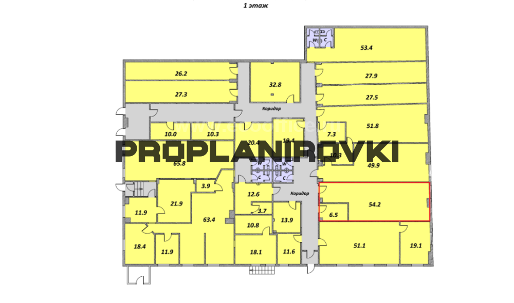 Планировка зал - 54.2 кв.м., склад - 6.5 кв.м; кондиционирование