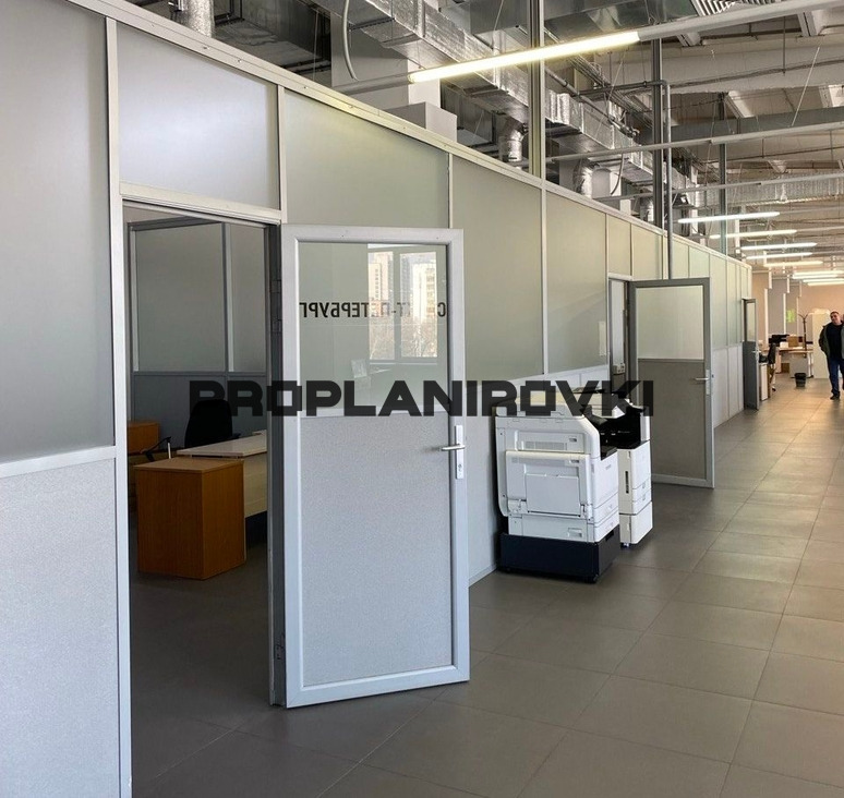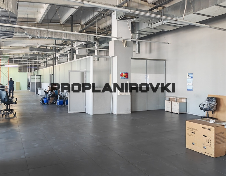Открытая планировка + два кабинета для руководства, переговорные, подсобные помещения.